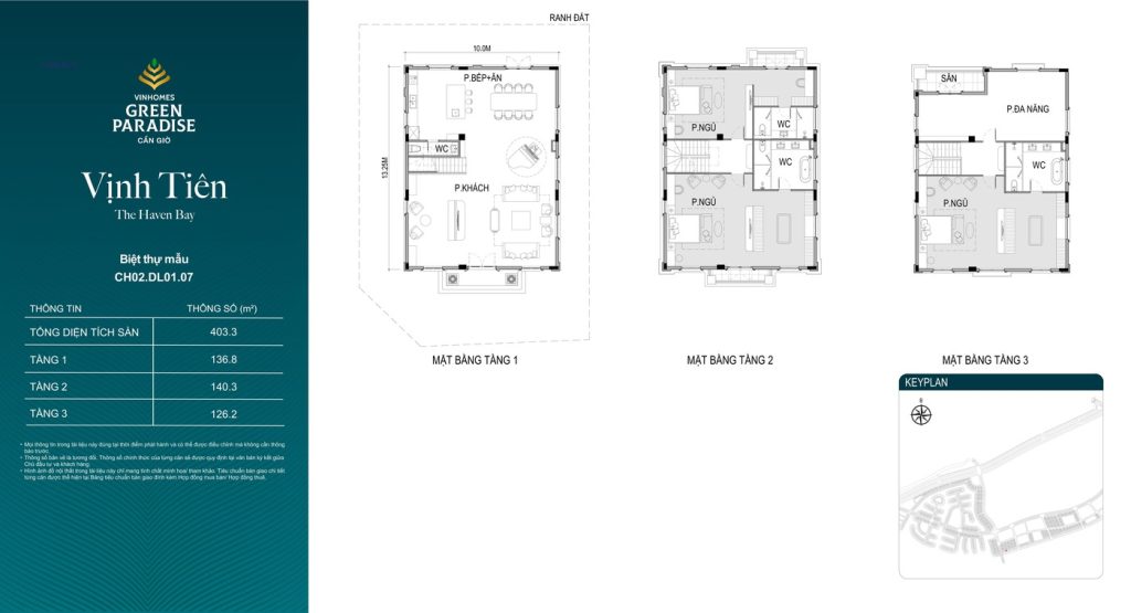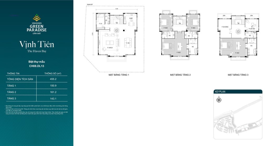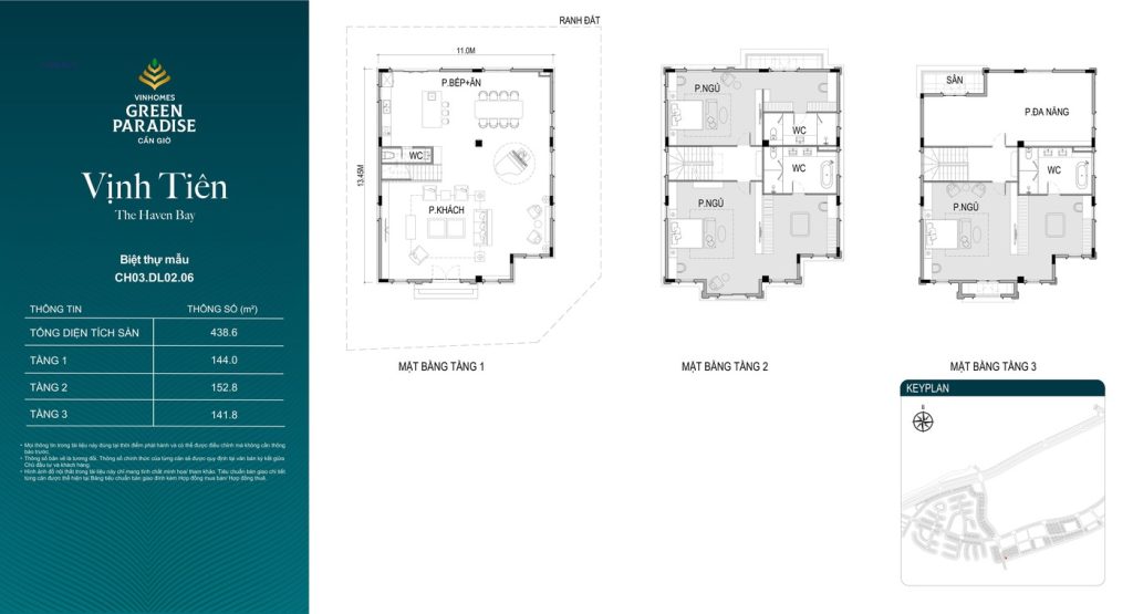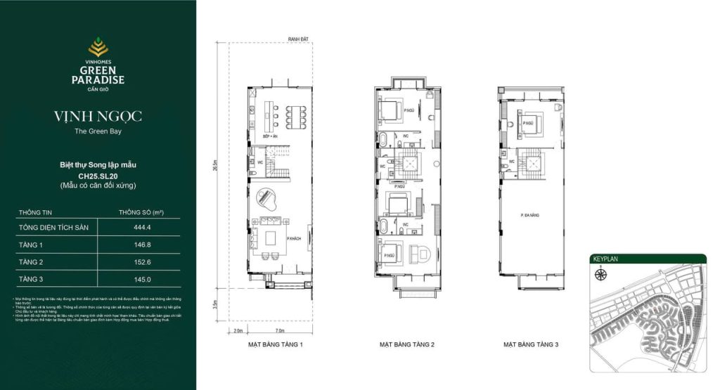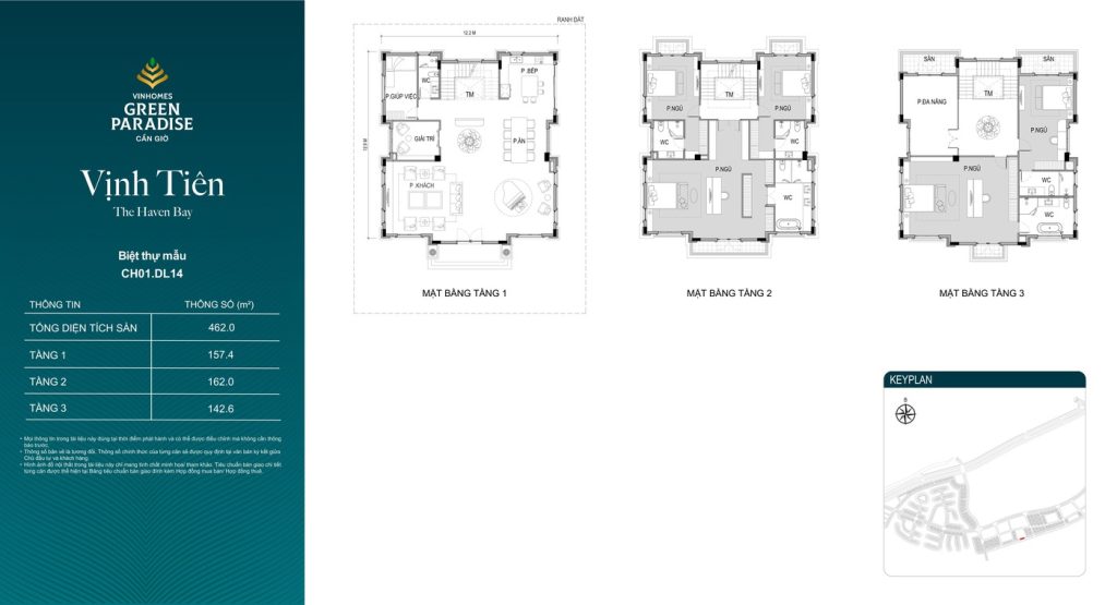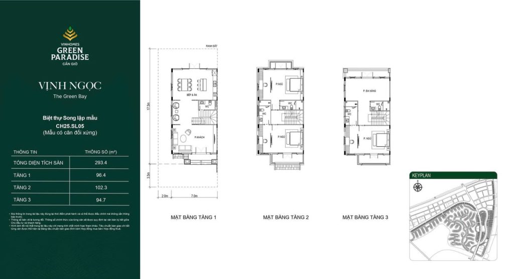 - 3 tiểu khu: Thiên Đường Xanh – Ánh Sáng – Vịnh Ngọc